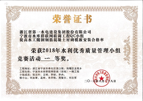 2018水利優(yōu)秀質(zhì)量管理小組一等級(奉化江堤防QC小組)