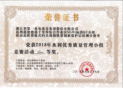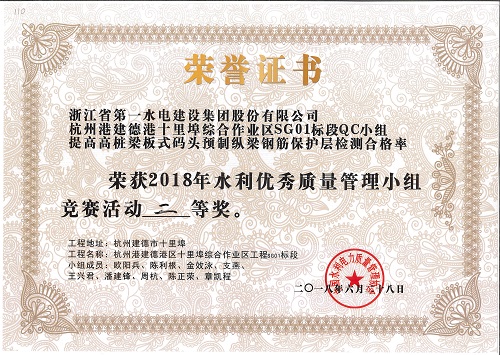 2018水利優(yōu)秀質(zhì)量管理小組二等級(杭州港建德十里埠綜合作業(yè)區(qū)SG01標段QC小組)