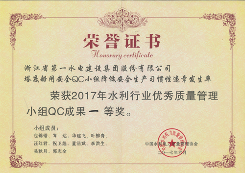 2017年 水利行業(yè)優(yōu)秀質(zhì)量管理小組QC成果一等獎——降低安全生產(chǎn)習慣性違章發(fā)生率