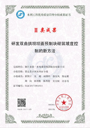 水利工程優(yōu)秀質(zhì)量管理小組二類成果——研發(fā)雙曲拱壩壩面預制塊砌筑坡度控制的新方法
