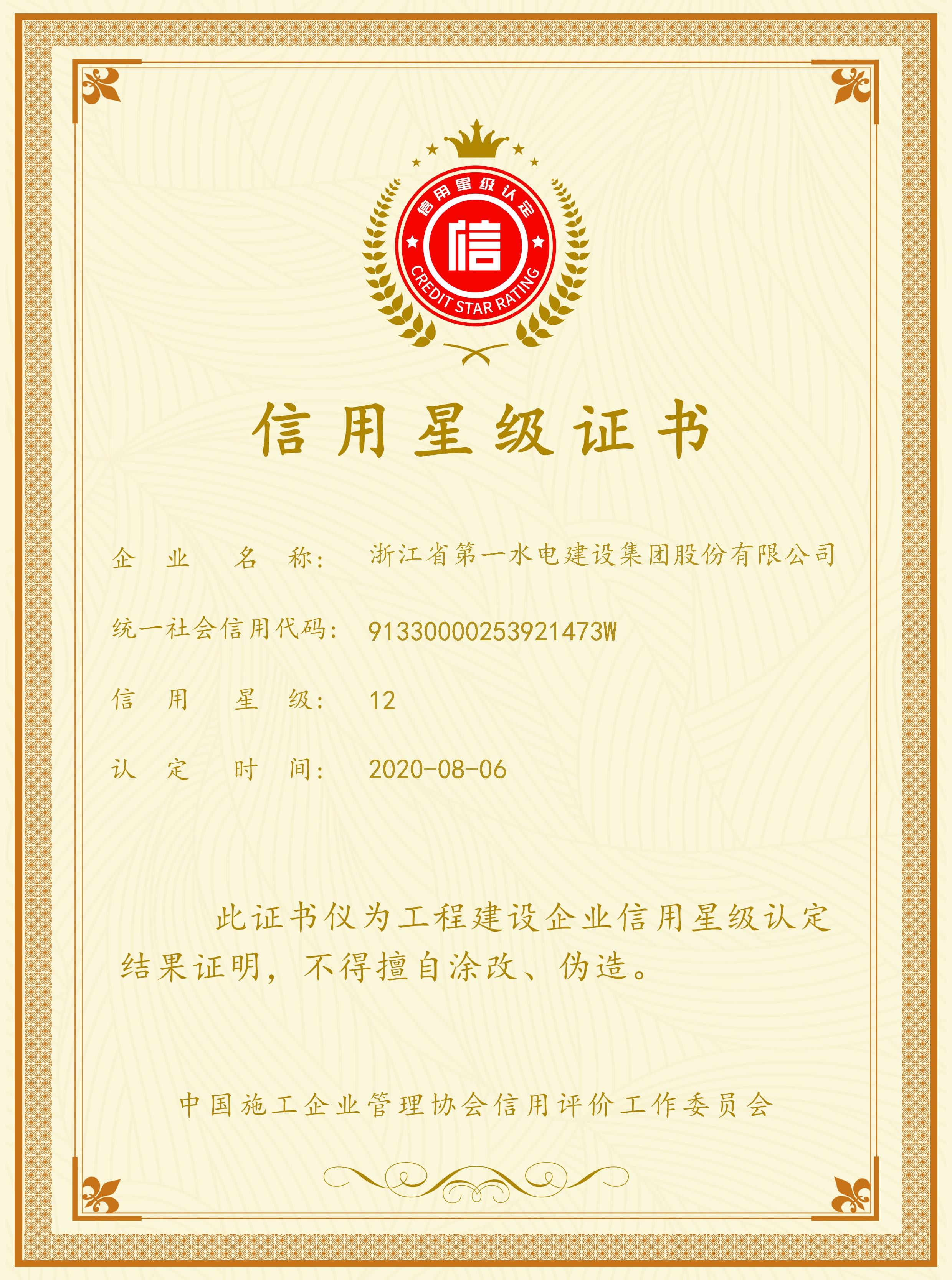 12 Star Recognition of the Credit Rating of the Engineering Construction Enterprise