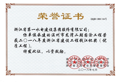 2018年度浙江省建設(shè)工程錢江杯獎(jiǎng)——溫州龍灣二期圍涂工程