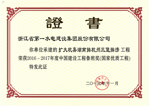 中國(guó)建設(shè)工程魯班獎(jiǎng)——擴(kuò)大杭嘉湖南排杭州三堡排澇工程