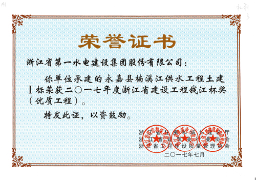 2017年度浙江省建設(shè)工程錢江杯獎(jiǎng)——永嘉縣楠溪江供水工程