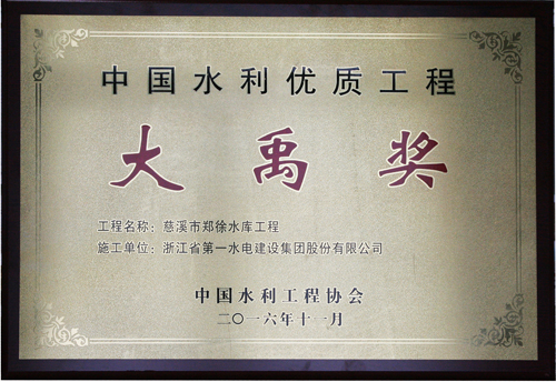 中國(guó)水利優(yōu)質(zhì)工程大禹獎(jiǎng)——慈溪市鄭徐水庫工程