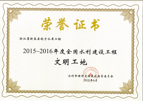 欽寸水庫2015-2016全國水利建設(shè)工程文明工地