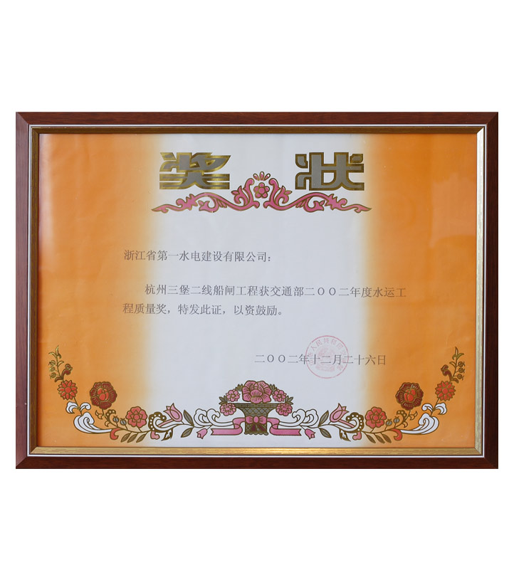 交通部水運工程質(zhì)量獎——杭州三堡二線船閘工程(2002)