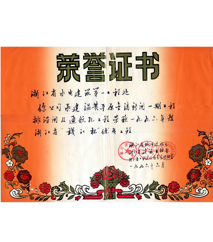 浙江省建設(shè)工程錢江杯獎——溫黃平原金清新閘一期工程排澇閘及通航孔工程(1996)