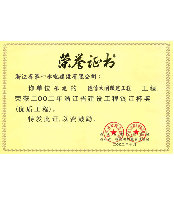 浙江省建設(shè)工程錢江杯獎——德清大閘改建工程(2002)
