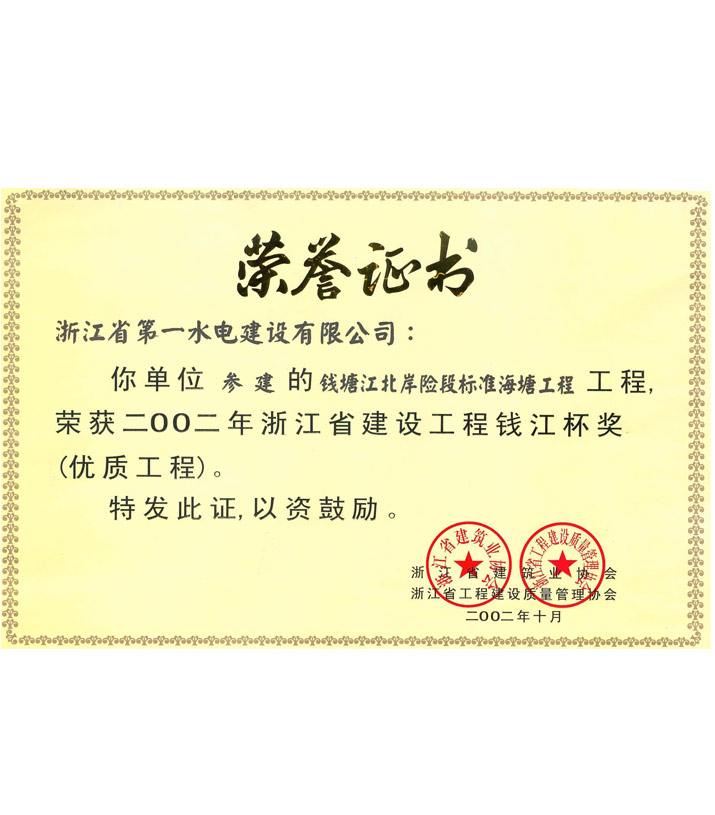 浙江省建設(shè)工程錢江杯獎——錢塘江北岸險段標(biāo)準(zhǔn)海塘工程(2002)