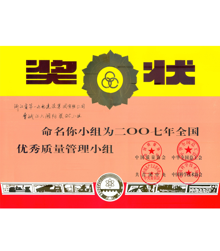 全國優(yōu)秀質(zhì)量管理小組——曹娥江大閘防裂QC小組(2007)