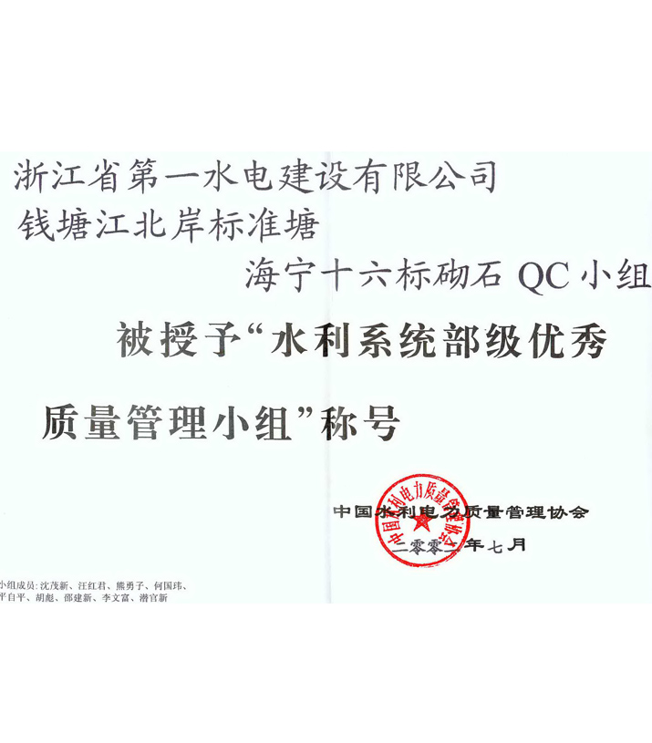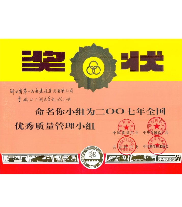 全國優(yōu)秀質(zhì)量管理小組——曹娥江大閘皮帶機QC小組(2007)