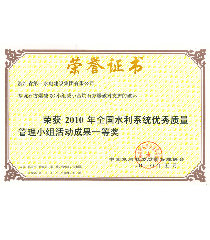 全國水利系統(tǒng)優(yōu)秀質(zhì)量管理小組活動成果一等獎——基坑石方爆破QC小組減少基坑石方爆破對支護(hù)的破壞(2010)