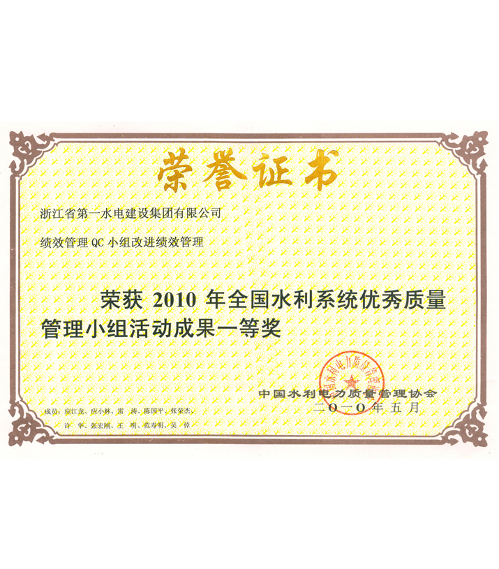 全國水利系統(tǒng)優(yōu)秀質(zhì)量管理小組活動成果一等獎——績效管理QC小組改進(jìn)