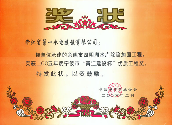 寧波市“甬江建設(shè)杯”優(yōu)質(zhì)工程獎(jiǎng)——余姚市四明湖水庫(kù)除險(xiǎn)加固工程(2005)