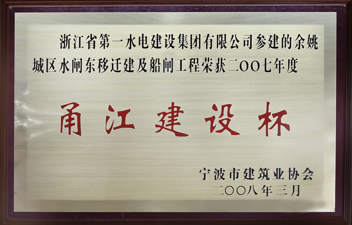 寧波市“甬江建設(shè)杯”優(yōu)質(zhì)工程獎(jiǎng)——余姚城區(qū)水閘東移遷建及船閘工程(2007)