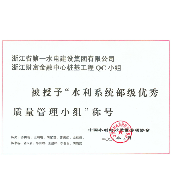 水利系統(tǒng)部級優(yōu)秀質(zhì)量管理小組——浙江財富金融中心樁基工程QC小組