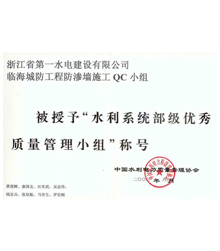 水利系統(tǒng)優(yōu)秀質(zhì)量管理小組——臨海城防工程防滲墻施工QC小組(2003)