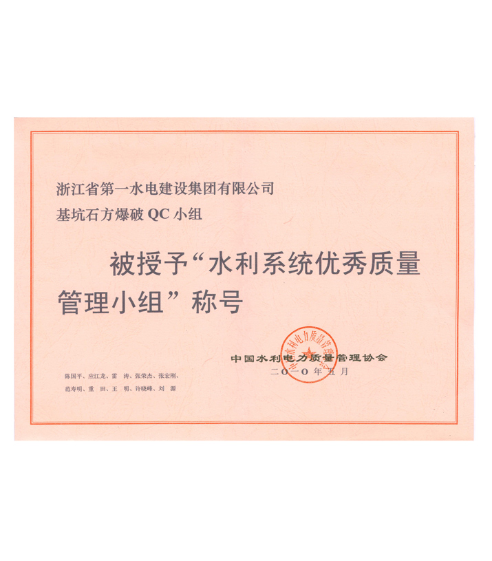 水利系統(tǒng)優(yōu)秀質(zhì)量管理小組——基坑石方爆破QC小組(2010)