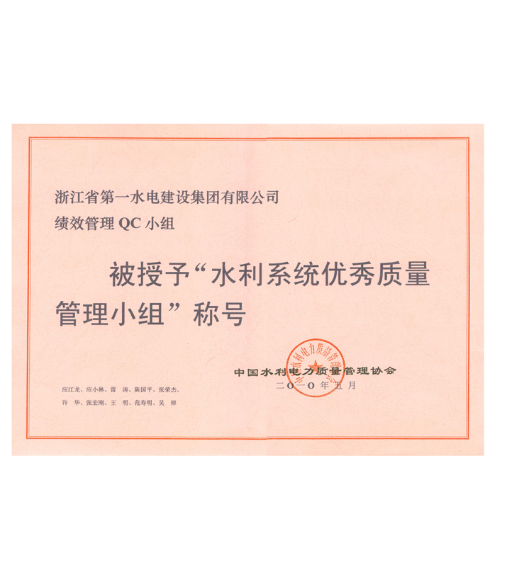 水利系統(tǒng)優(yōu)秀質(zhì)量管理小組——績效管理QC小組(2010)