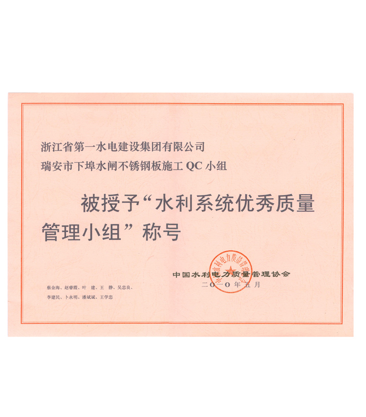 水利系統(tǒng)優(yōu)秀質(zhì)量管理小組——瑞安市下埠水閘不銹鋼板施工QC小組(2010)