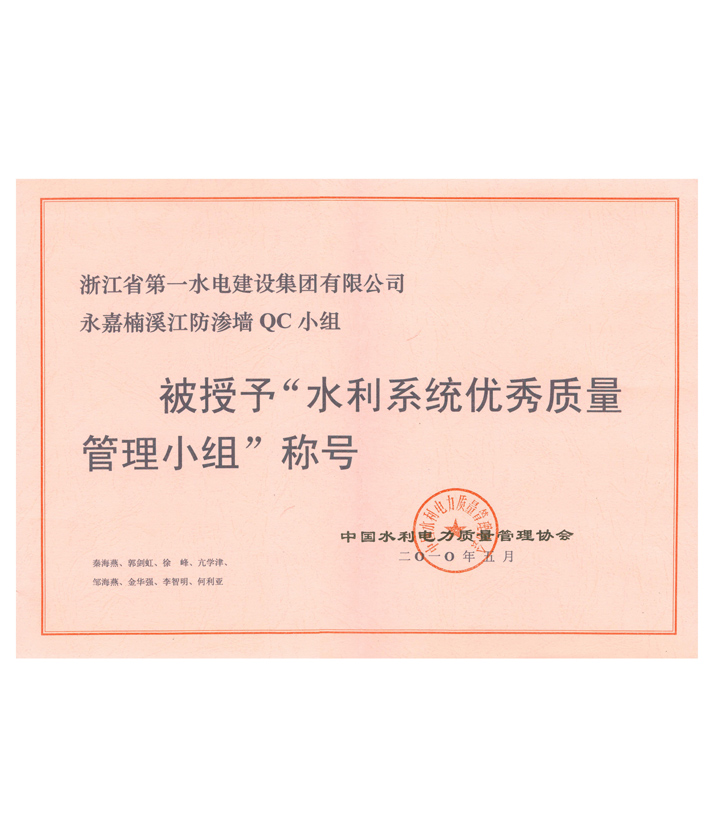 水利系統(tǒng)優(yōu)秀質(zhì)量管理小組——永嘉楠溪江防滲墻QC小組(2010)