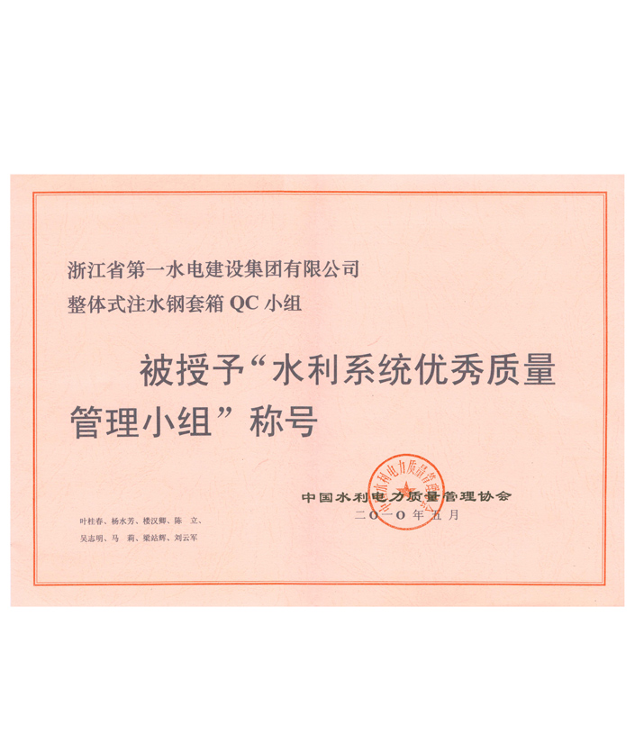 水利系統(tǒng)優(yōu)秀質(zhì)量管理小組——整體式注水鋼套箱QC小組(2010)