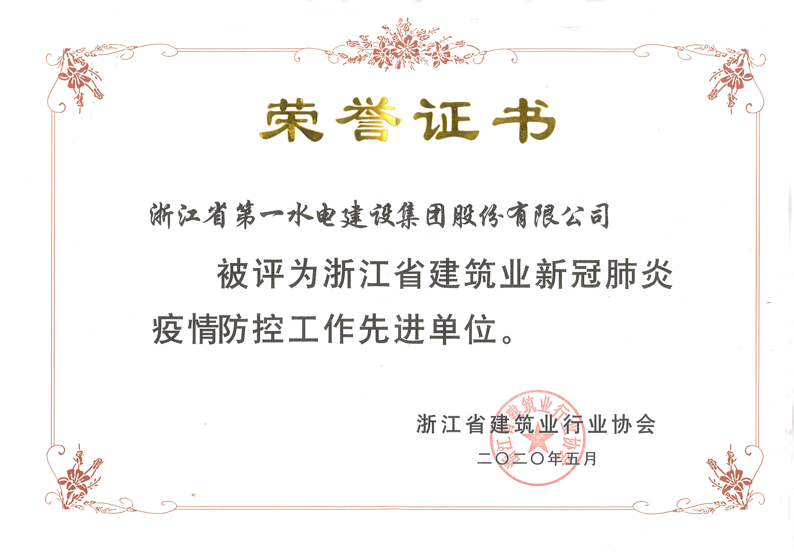 浙江省建筑業(yè)新冠肺炎防控工作先進(jìn)單位