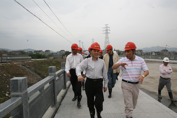 陳廳長(zhǎng)一行檢查了正在施工的閘站、跨河橋梁、輸水河道等工程,聽(tīng)取了工程建設(shè)進(jìn)度、度汛措施落實(shí)、安全生產(chǎn)措施等情況匯報(bào) 。陳廳長(zhǎng)對(duì)工程形象進(jìn)度、施工質(zhì)量管理等作了充分的肯定,對(duì)工程的下一步建設(shè)提出了要求。他指出,浙東引水蕭山樞紐工程是浙東水資源優(yōu)化配置格局中的關(guān)鍵性工程,是浙東引水系統(tǒng)工程的龍頭,省委、省政府對(duì)這項(xiàng)工程建設(shè)非常重視。要求參建各方一定要高度重視,克服一切困難,盡最大努力,按時(shí)、優(yōu)質(zhì)建設(shè)工程。陳廳長(zhǎng)還強(qiáng)調(diào),要求在即將到來(lái)的主汛期,參建各方要把安全度汛考慮更周全,針對(duì)不同情況、不同施工階段,加強(qiáng)與地方政府和有關(guān)單位的聯(lián)系溝通,發(fā)現(xiàn)問(wèn)題,及時(shí)采取有效措施,確保工程安全度汛,保障施工建設(shè)進(jìn)度和施工質(zhì)量安全。