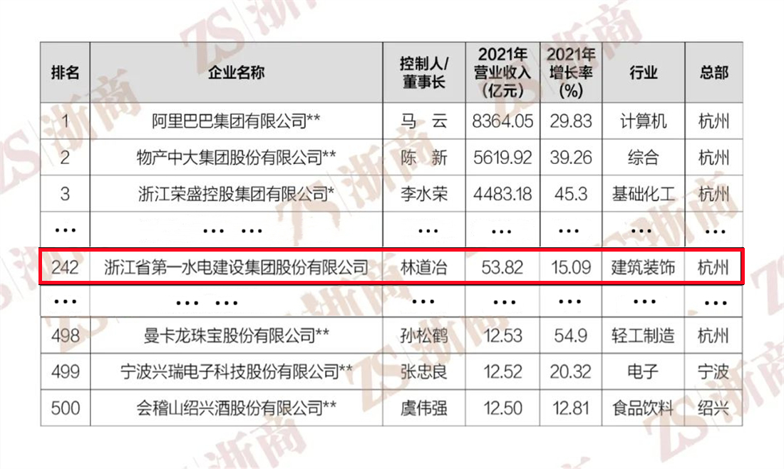 “2022浙商全國(guó)500強(qiáng)”全榜單