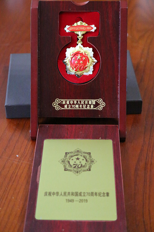 為慶祝中華人民共和國成立70周年,加強愛國主義教育,培育和踐行社會主義核心價值觀,增強中國特色社會主義偉大事業(yè)凝聚力和感召力,中共中央、國務院、中央軍委對為中國人民的解放、發(fā)展和改革事業(yè)作出重大貢獻的人員頒發(fā)“慶祝中華人民共和國成立70周年”紀念章。紀念章使用銅胎鍍金材質,通徑為50毫米,主要元素為五星、“70”飄帶、團錦結、如意祥云和光芒,主色調為紅色和金色。核心部分為五星,代表國家榮譽。“70”飄帶象征中華人民共和國70年奮斗歷程。團錦結環(huán)繞在五星和“70”飄帶周圍,寓意全國各族人民大團結,構建人類命運共同體的愿景。章體外環(huán)以如意祥云、光芒構成,象征人民對美好生活的向往,同時表達隆重慶祝中華人民共和國生日,禮贊國家富強、民族振興、人民幸福的輝煌成就,以及在70年輝煌奮斗成就的基礎上不忘初心、繼續(xù)前進的堅定決心。